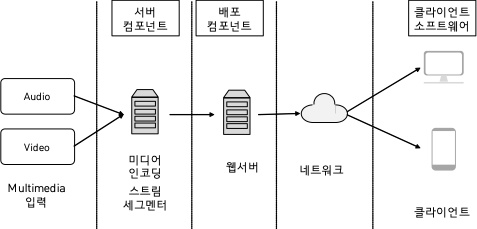 HLS 시스템은 서버 소프트웨어와 클라이언트 소프트웨어로 구성되고, 서버 소프트웨어는 서버 컴포넌트, 배포 컴포넌트로 구성된다.
